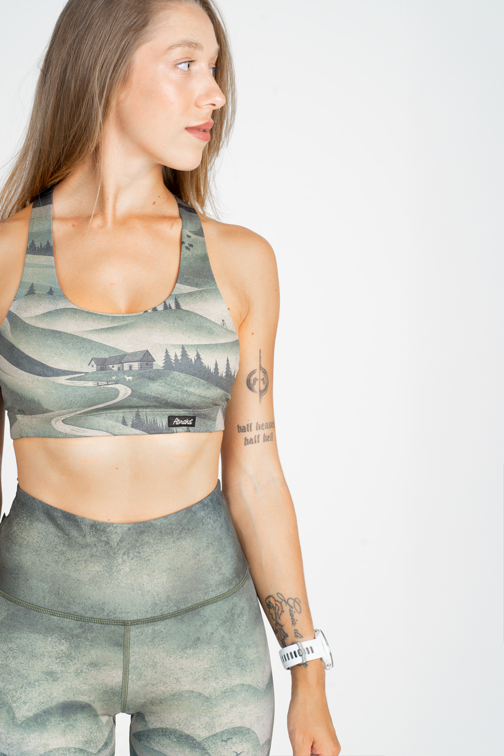 Abraka® legíny sú šité v pohodlnom premyslenom strihu. Vysoký dvojmo šitý pás krásne formuje postavu, drží na mieste a nešmýka sa. Vďaka použitiu kvalitných európskych recyklovaných materiálov sú doslova ako druhá koža.