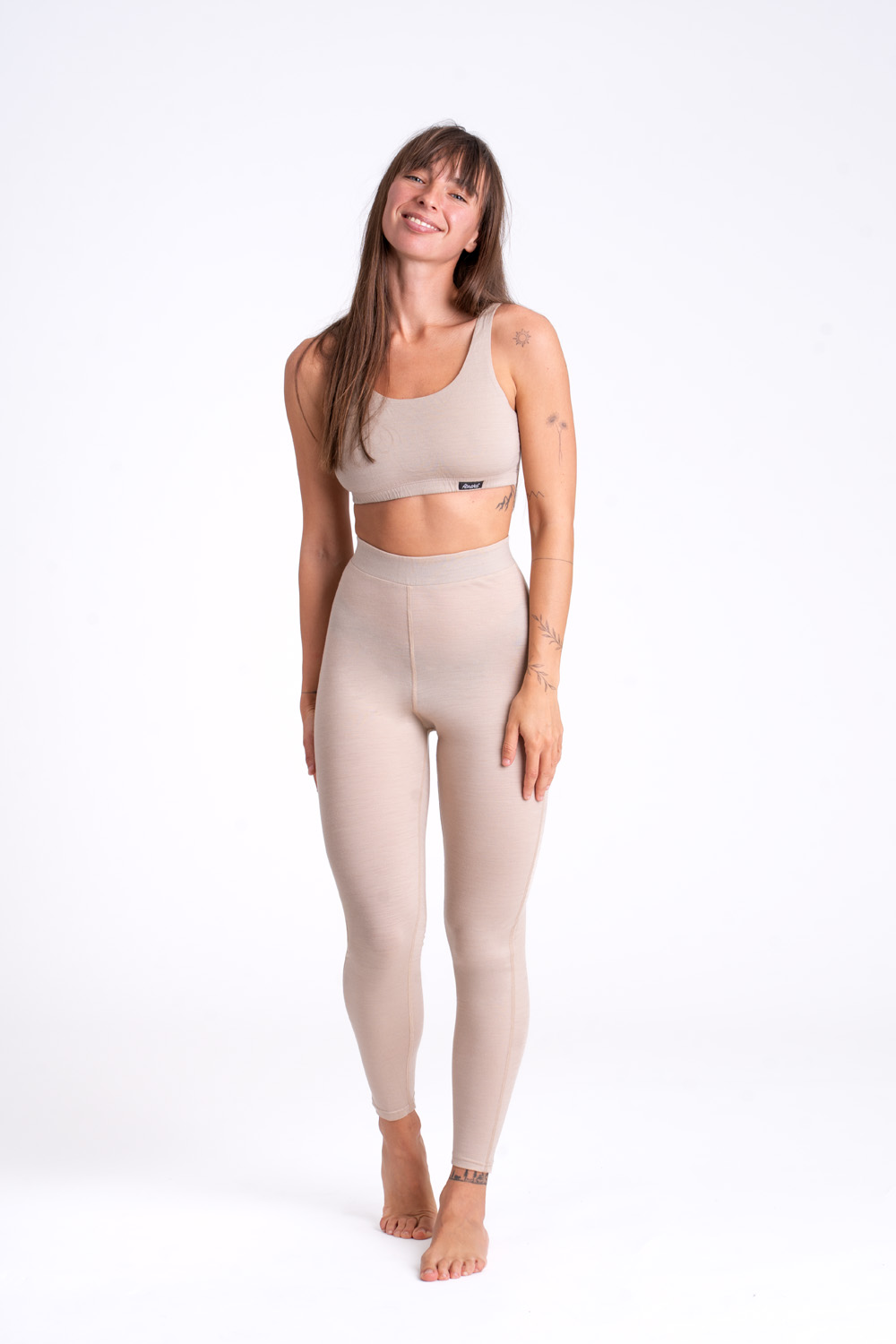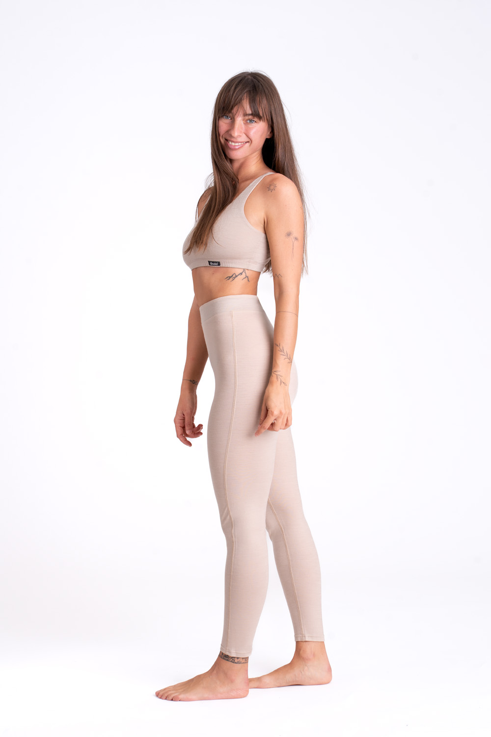 Pri svetlej farbe Sand merino materiálu môže kontrastná spodná bielizeň jemne presvitať, čo je prirodzená vlastnosť jemného merina.