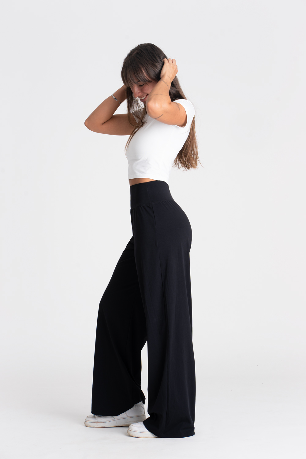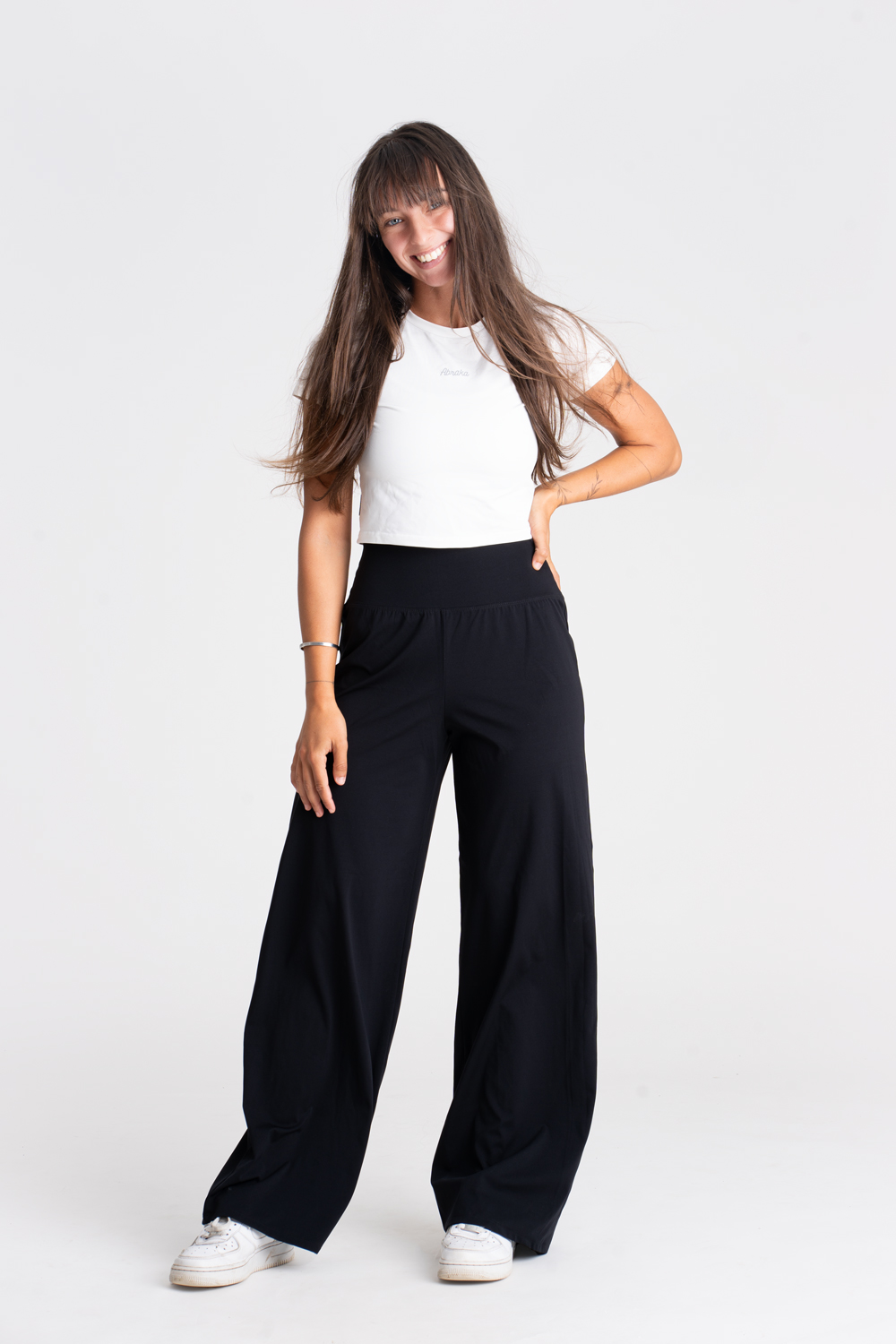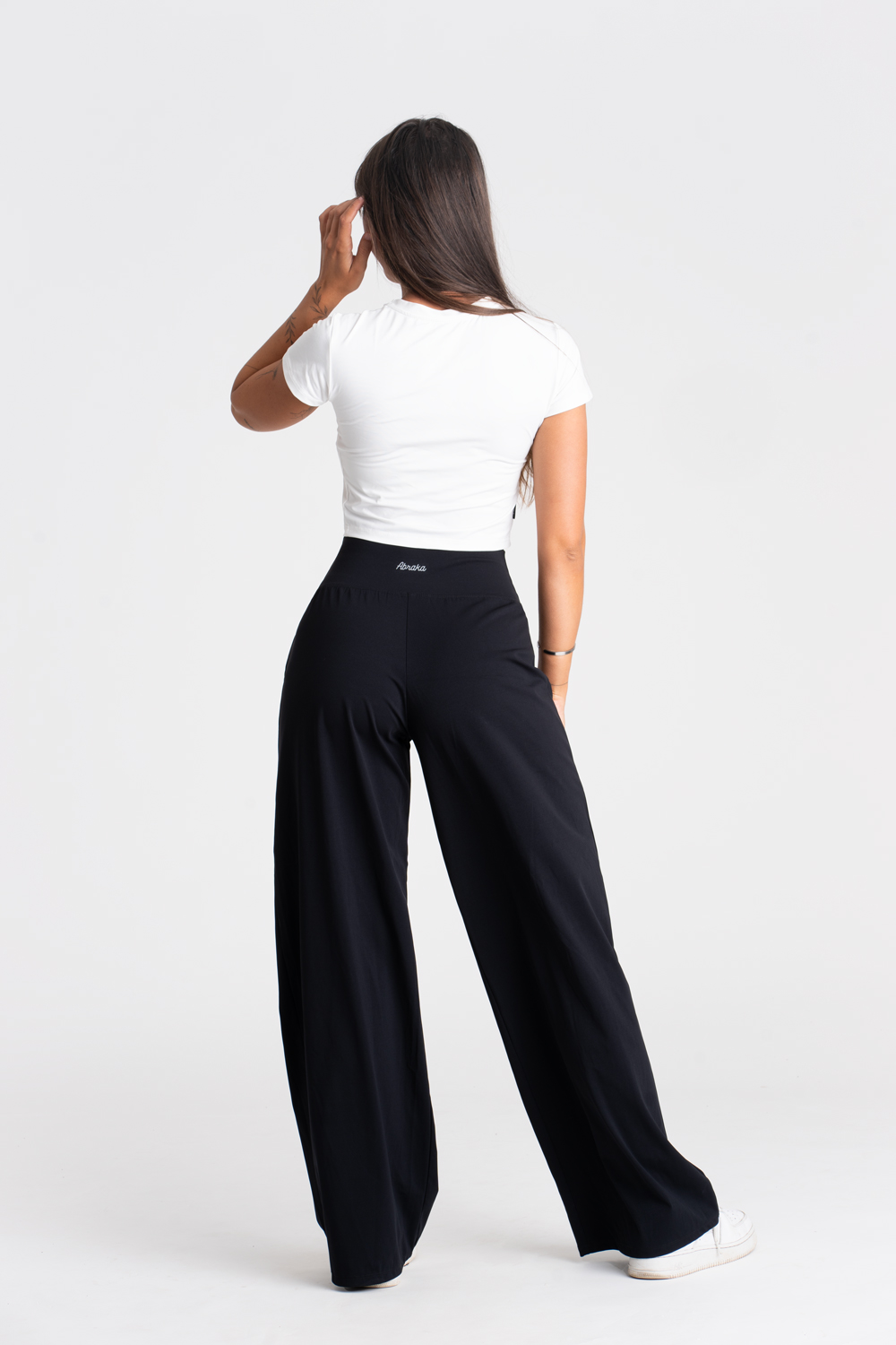 Abraka® funkčné pohodlné nohavice Wide Mamba majú univerzálny padnúci strih v športovo elegantnom štýle. Obľúbený vysoký pás bez gumičky pohodlne sedí na páse a je ako stvorený aj ku cropnutým vrchným dielom. Nohavice krásne skombinujete do elegantného voľnočasového, ale i športového outfitu.