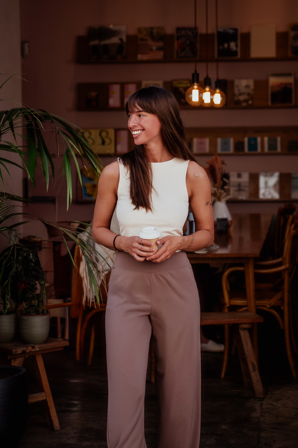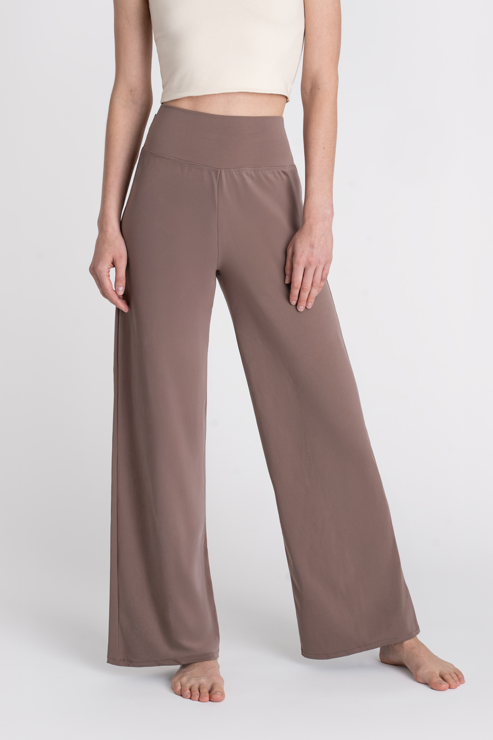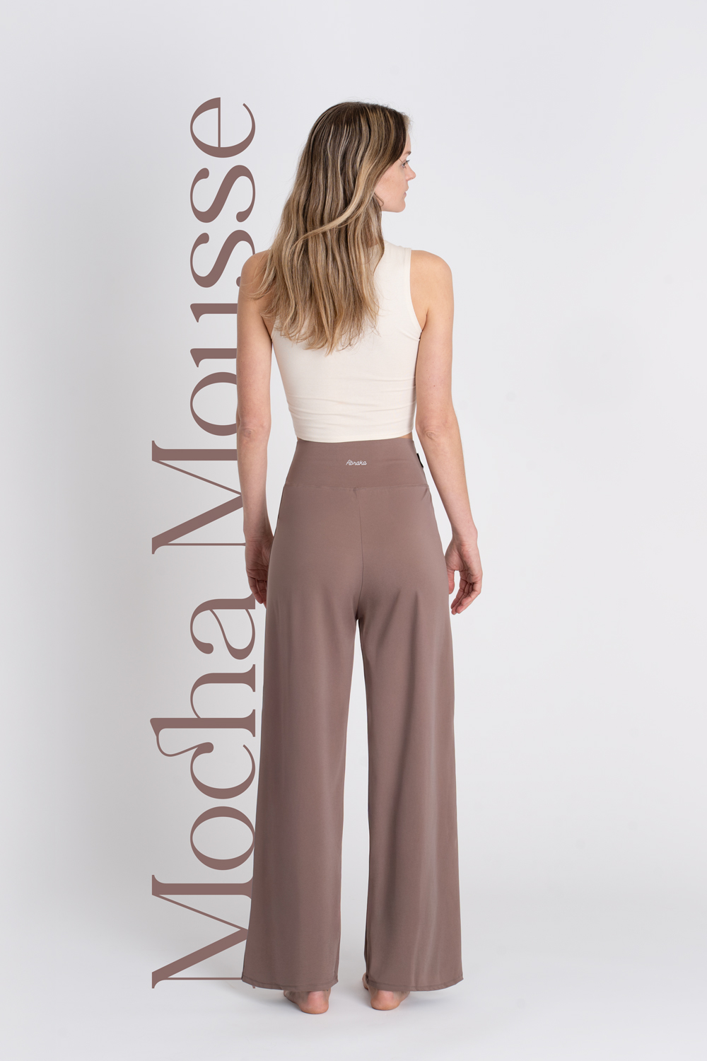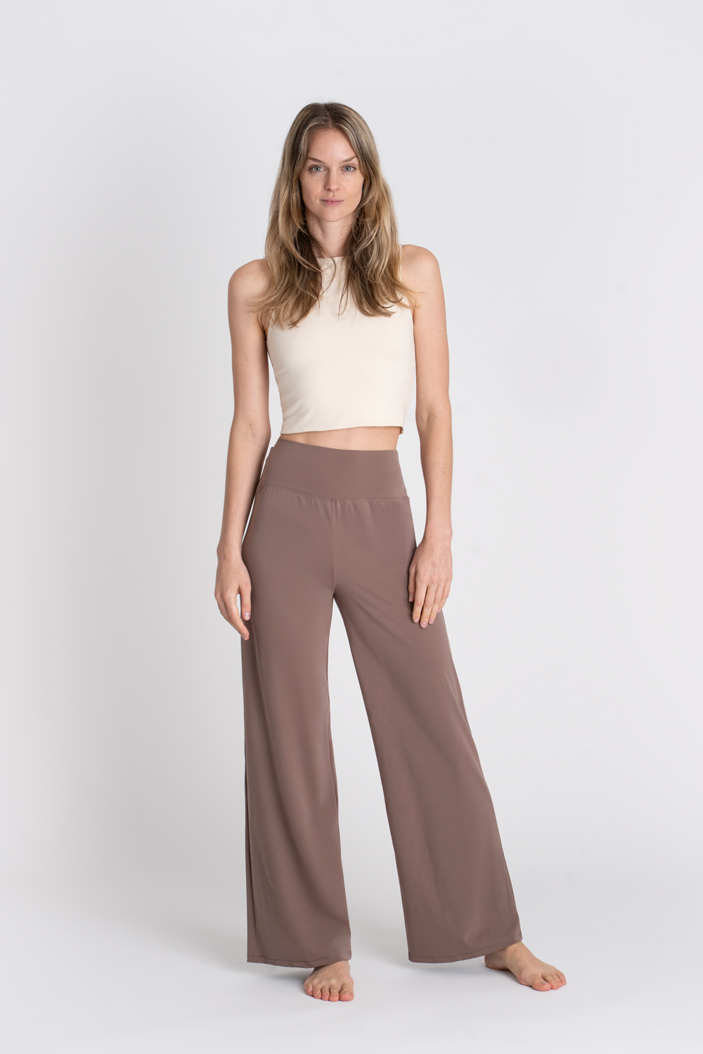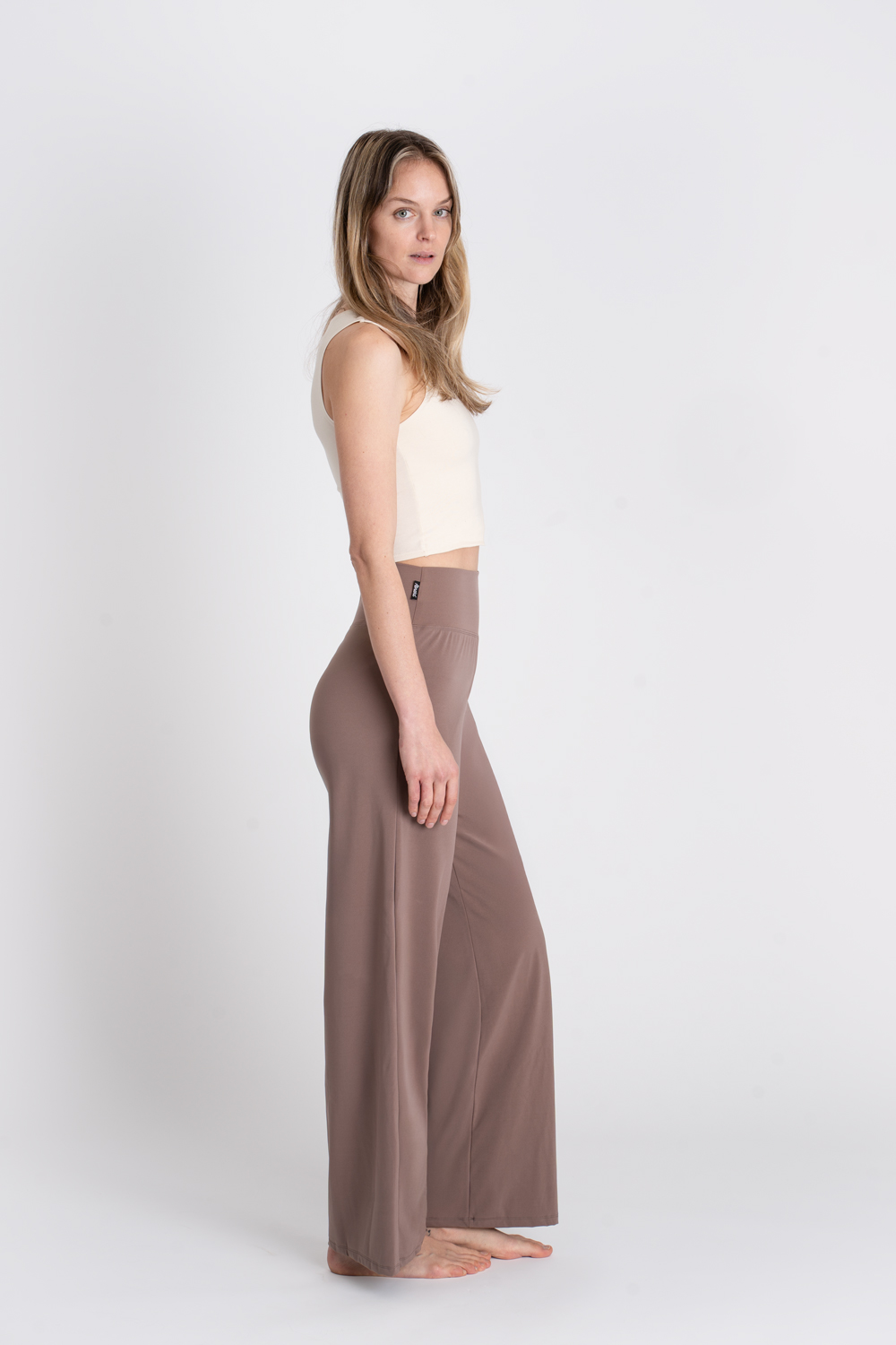 Abraka® funkčné pohodlné nohavice Wide Mamba majú univerzálny padnúci strih v športovo elegantnom štýle. Obľúbený vysoký pás bez gumičky pohodlne sedí na páse a je ako stvorený aj ku cropnutým vrchným dielom. Nohavice krásne skombinujete do elegantného voľnočasového, ale i športového outfitu.