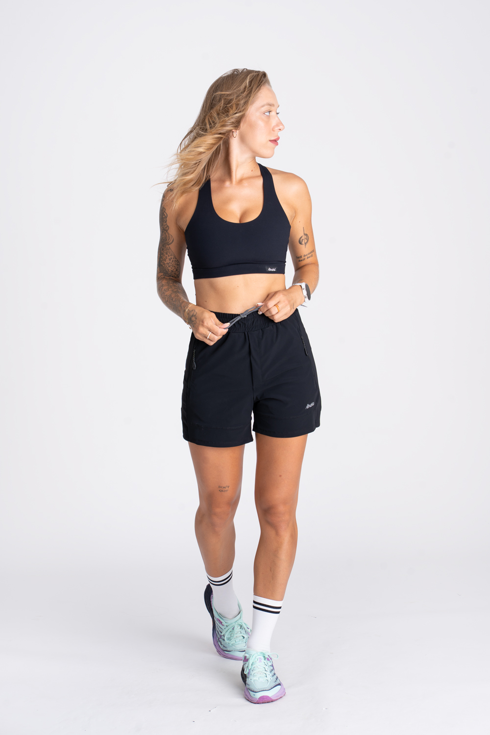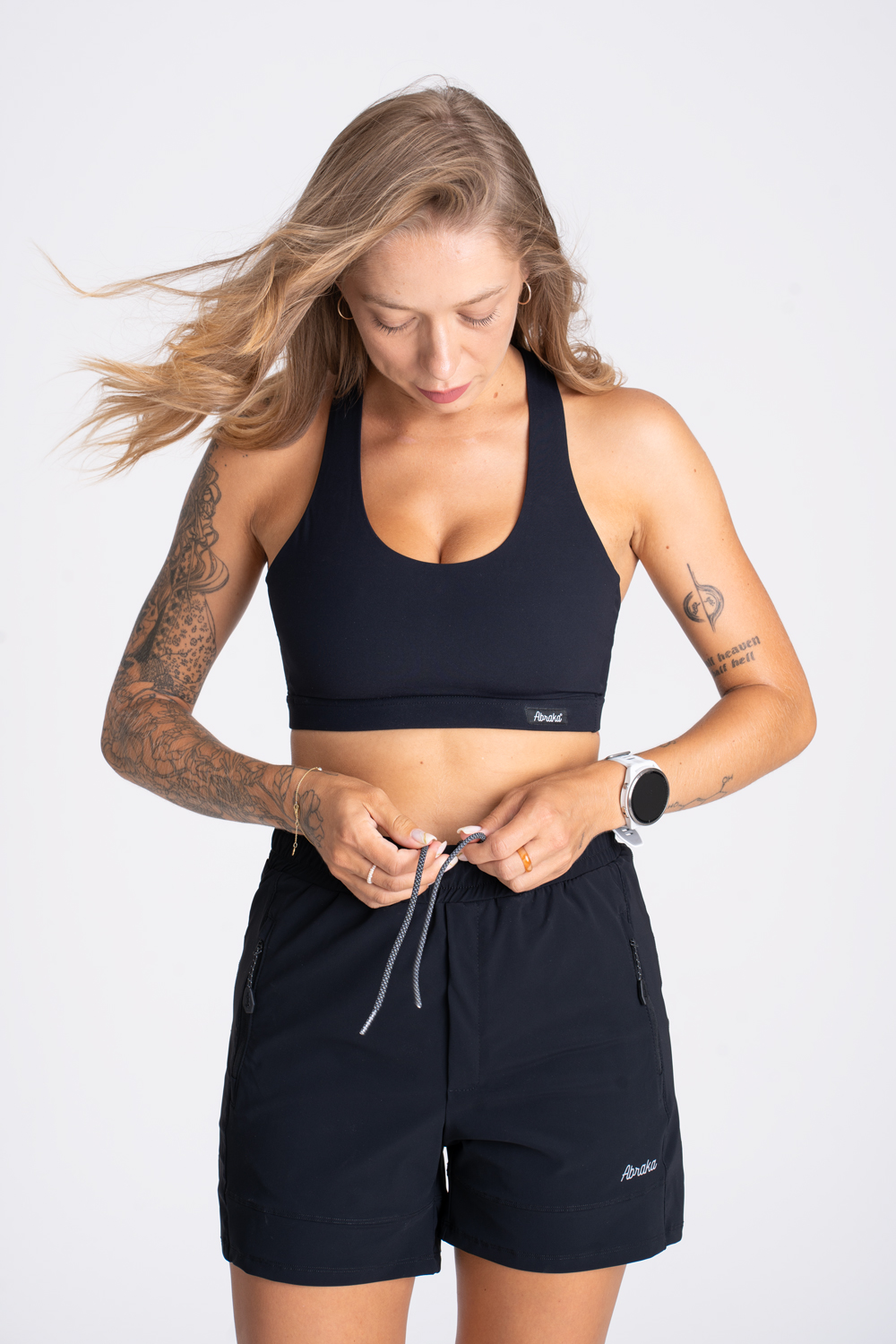 Abraka® voľné šortky sú šité vo vylepšnom, panelovom, pohodlnom strihu. Majú zvýšený sed s prešívanou pružnou gumou v páse a s vnútornými šnúrkami na dotiahnutie podľa potreby. Šortky pohodlne držia, nešmýkajú sa a pekne formujú postavu. Majú dve vrecká na zips, do ktorých poľahky zmestíte aj väčší mobilný telefón.